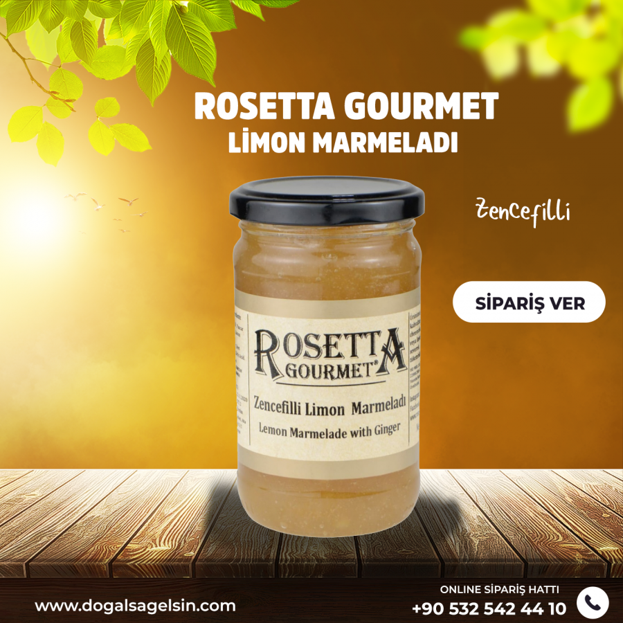 Zencefil ve Limon kış aylarının ayrılmaz ikilisi...Annelerin gizli sağlık formülü...Rosetta Gourmet, bu ayrılmaz ikiliyi muhteşem lezzet-kokularıyla ve güneşten çalınmış rengiyle sofranıza getiriyor. Bu muhteşem ikilinin tadına doyulmaz reçelini kahvaltılarınızda kaymakla, labne peynirli kızarmış ekmekle yiyebilirsiniz. Aynı zamanda, kek ve kurabiyelerinize yaratıcılığınıza göre değerlendirebilir cheesecake sosu olarak kullanabilirisniz. Limonatalarınıza veya yeşil çayınıza ilave edebilir ya da direk bir fincan sıcak çayın içine damak tadınıza göre 1-2 tatlı kaşığı koyup karıştırmanız yeterli olacaktır. Kış aylarında boğaz enfeksiyonlarına karşı sizi korumada bir numaralı desteğiniz olacaktır. Yaz aylarında ise minik parçalar halinde dondurup Rosetta Gourmet Zencefilli Limon damlaları yaparak bunları hem alkollü hem de alkollsüz içeceklerinizde kullanabilirsiniz. Şimdiden Afiyet Olsun.
